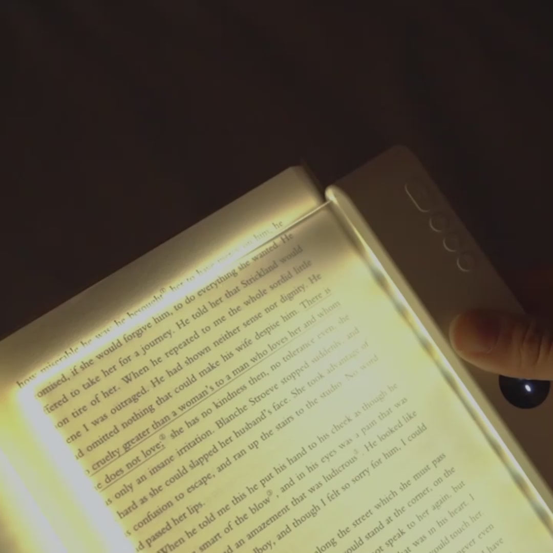 Vous placez simplement la plaque lumineuse au-dessus de votre page. La LED diffuse une lumière douce et uniforme directement sur le livre, sans éblouir vos yeux.